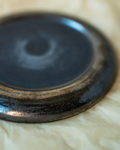 Wheel-thrown bubble rim tray with a metallic finish on the rim